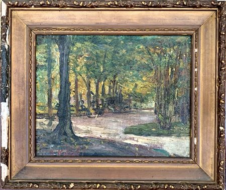 Vitali "Giardini pubblici a Milano" olio su tela (cm 27x34) firmato in basso a
