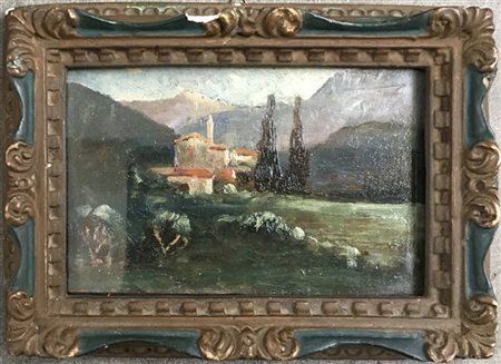 Ignoto "Paesaggio montano" olio su tavola (cm 8,5x 14) In cornice