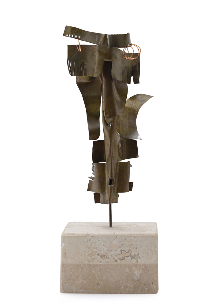 MIRKO (BASALDELLA) Udine 28/09/1910 - Cambridge(USA) 24/09/1969  Figura rituale, 1956 scultura in ottone cm. 24x6x4 (con base cm. 29x10x10), opera non firmata. Bibliografia: -"Mirco, un viaggiatore fra mito e realtà", Giovanni Granzotto, Verso l'Arte Edizioni, mostra presso il Centro Civico, ex Sede Municipale, Povoletto, dal 19 agosto al 5 settembre 2004, pagina 25.