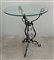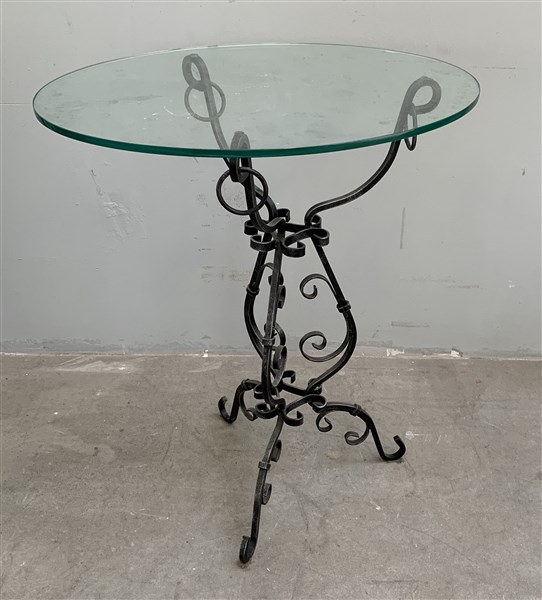 Tavolino con struttura in ferro battuto e piano in vetro (63x74x48) (lievi dife