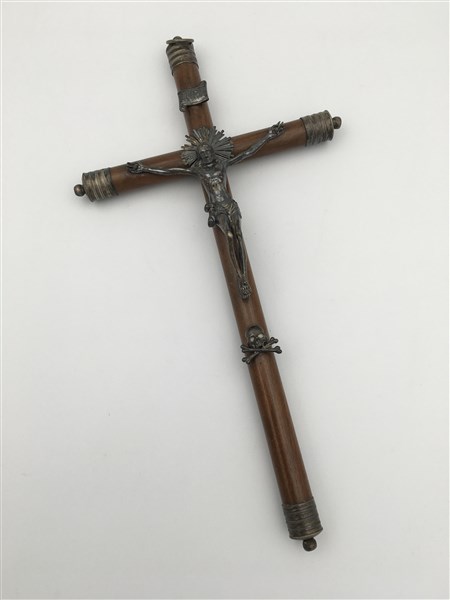 Arte del secolo XIX. Cristo crocifisso, scultura in argento con croce in legno