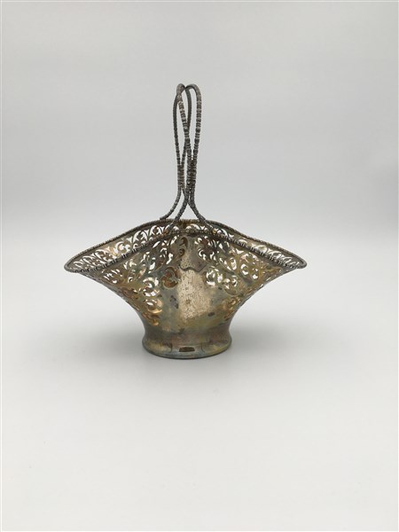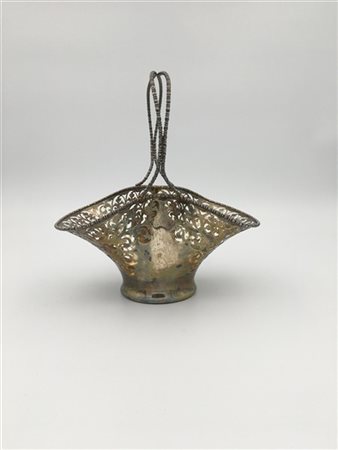 Cestino di forma sagomata in argento traforato, manici cordonati, Punzoni di Ch