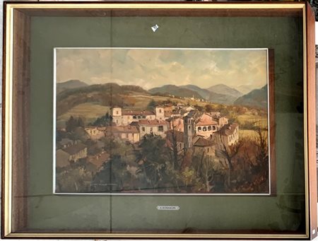 "Senza titolo", inizi anni '60, olio su masonite (cm 39,5x59), firmato in basso a sinistra