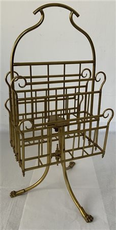 Portariviste girevole in ottone a quattro scomparti con piedi ferini (cm 41X85X27)