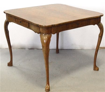 Tavolo da gioco con gambe mosse e quattro cassetti nella fascia (cm 95x76x95) (difetti)