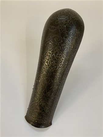 Bazu-band, protezione per l'avambraccio, in ferro con incisioni raffiguranti volatili. Persia, fine secolo XVIII/ inizi XIX (h. cm 30) (lievi difetti)