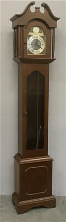 Orologio a colonna di produzione moderna, movimento meccanico, quadrante a fascia argentata (cm 40x192x23) (difetti)