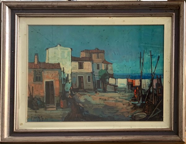 Maggi Giampietro "Sardegna, case di pescatori" olio su tela (cm 60x80) Firmato e