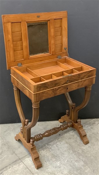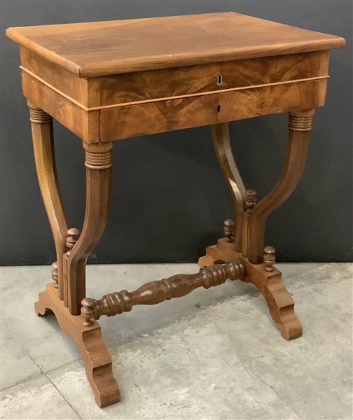 Tavolo da lavoro lastronato in mogano, secolo XIX (cm 57x68x40) (difetti)