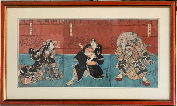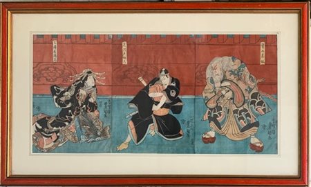 Lotto composto da quattro stampe orientali di soggetti e misure differenti, in cornici