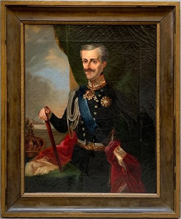 Ignoto del secolo XIX "Ritratto di re in uniforme" olio su tela (cm 70,5x55). I