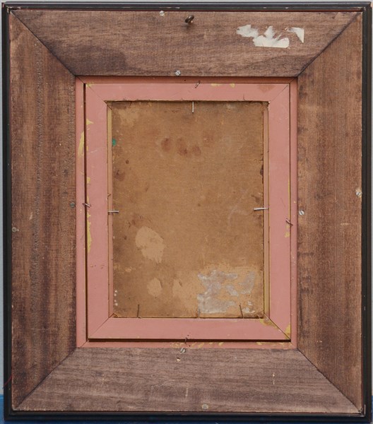 Ignoto "Figura in un paesaggio" olio su cartone (cm 24.5x17) Reca iscrizione P.