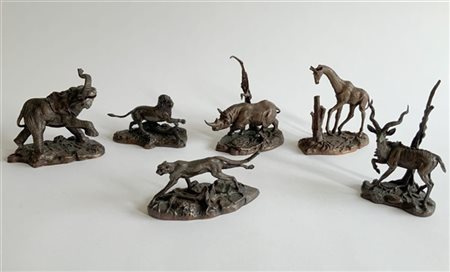 Manifattura The Franklin Mint, gruppo di sei sculture in bronzo raffiguranti animali selvatici, marcati sotto la base (h max cm 14) (lievi difetti)