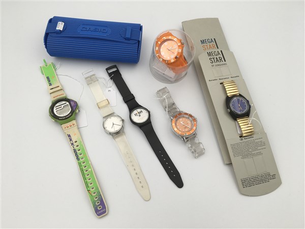 Lotto composto da sei orologi da polso in materiale plastico con movimento al q