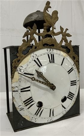 Movimento di orologio morbier decorato con fregio in bronzo dorato raffigurante gallo.