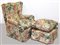 Lotto composto da una bergère ed un pouf rivestiti in tessuto floreale (difetti)