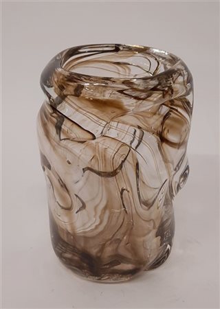 Vaso in vetro massello incolore con inclusione di filamenti marroni. Italia, an