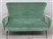 Divanetto a due posti imbottito e rivestito in velluto verde piedini in ottone.