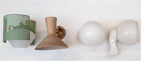 Lotto composto da quattro lampade da parete di epoche e produzioni differenti. Secolo XX. (misure diverse) (difetti)