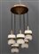Lampada a sospensione a cinque luci in ottone e vetro stampato. Italia, anni '6