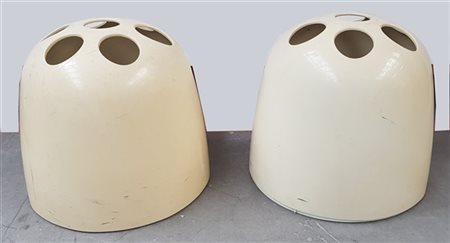 Coppia di portaombrelli modello "Dedalo". Produzione Studio Artemide, Italia, anni '70. Plastica bianca. Marcati sotto la base. (h cm 34; d cm 38)