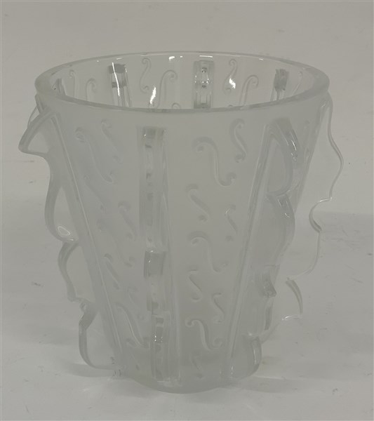 Lalique Vaso in vetro incolore soffiato in stampo e parzialmente acidato sulla s