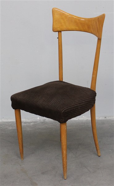 Sedia con struttura in legno massello, seduta imbottita e rivestita in velluto a coste. Italia, anni '40. (cm 46x91x45) (lievi difetti)