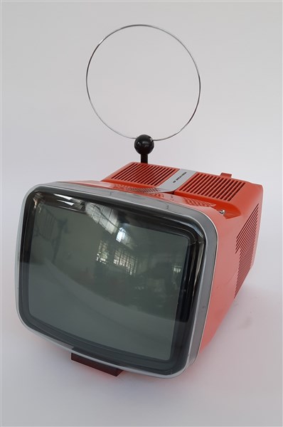 Televisore modello "Algol 11". Produzione Brionvega, Italia, 1964. Scocca in plastica arancione. (cm 27x23x30) (lievi difetti)