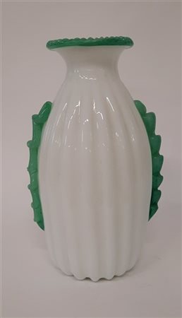 Manifattura di Murano Vaso in vetro lattimo con corpo costolato e morise e orl