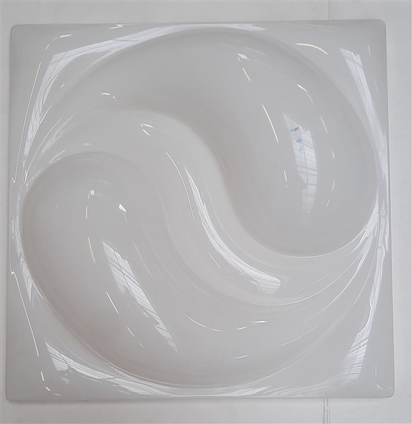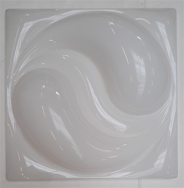 Coppia di plafoniere in metacrilato opalino, struttura in metallo. Italia, anni '70. (cm 59x59) (difetti)