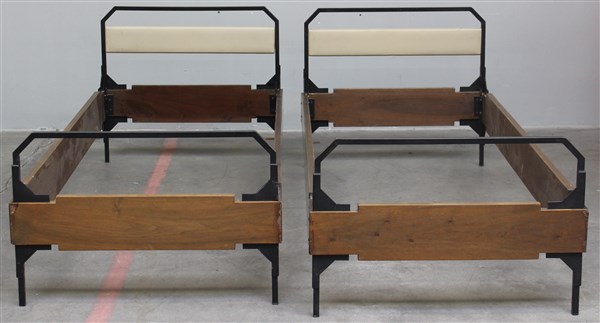 Galdino Maspero Coppia di letti singoli con struttura in legno impiallacciato e