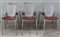 Gruppo di sei sedie disegnate per la Gare du Nord a Parigi modello "RCS". Produzione Tecno, Milano, anni '80. Metallo satinato grigio, seduta in cuoio bordeaux. Recanti marchio della produzione. (cm 48x77x48) (difetti)