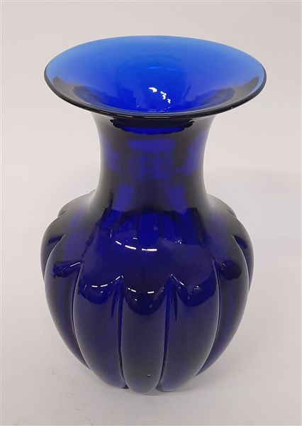 Archimede Seguso Vaso in vetro massello costolato blu. Murano, anni '70. Firmato