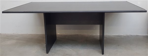 Tavolo in legno impiallacciato di rovere tinto nero. Italia, anni '70/'80. (cm 186,5x71x112,5) (difetti e mancanze)