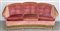 Divano a tre posti di forma curva imbottito e rivestito in velluto rosso, piedi