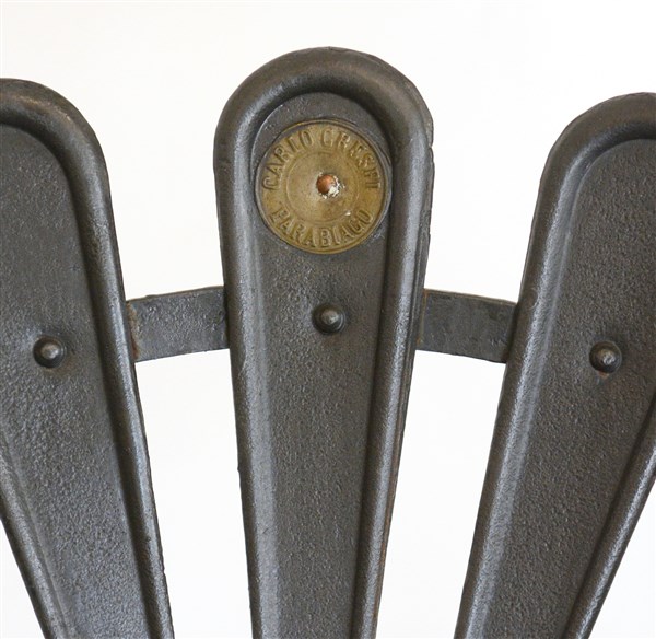 Carlo Crespi Coppia di poltroncine pieghevoli in ferro battuto verniciato grigio