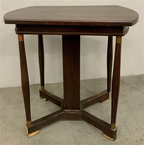 Tavolino in legno di noce massello e impiallacciato. Italia, anni '30. (cm 74x73x50) (difetti e restauri)