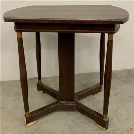 Tavolino in legno di noce massello e impiallacciato. Italia, anni '30. (cm 74x7