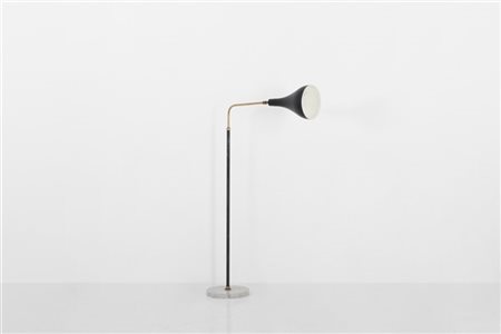 Lampada da terra ad altezza regolabile con paralume orientabile in metallo verniciato nero, fusto in ottone e metallo verniciato, base in marmo. Italia, anni '60. (h max cm 169) (lievi difetti e piccole sostituzioni)