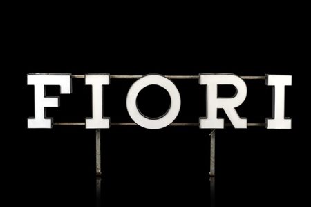 "Fiori" Insegna luminosa in plastica nera e bianco opaco, su struttura in metal
