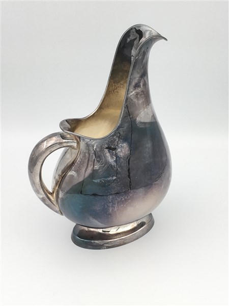 Caraffa in argento di forma bombata con versatoio stilizzato. Titolo 925. Argen