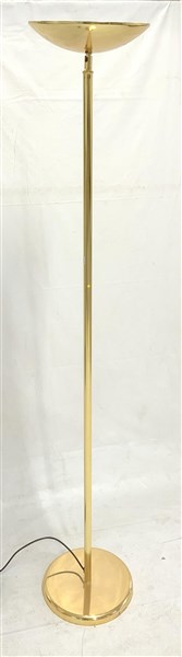 Lampada da terra con fusto e paralume in ottone. Italia, anni '70/'80. Recante etichetta adesiva del produttore. (h cm 184) (lievi difetti)
