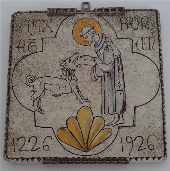 Formella commemorativa per i settecento anni dalla nascita di San Francesco. Italia, 1926. Sigla della manifattura al retro. (cm 15x15) (lievi difetti)