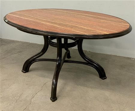 Thonet (Attribuito) Tavolo con piano di forma ovale in marmo rosa venato, strutt