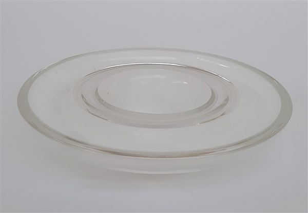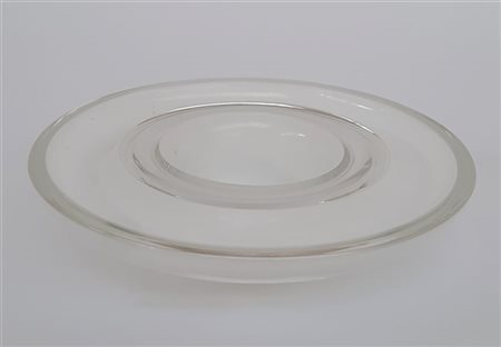 Posacenere realizzato per Tecno. Italia, secolo XX. Vetro lattimo incolore. Firmato a punta sotto la base. (h cm 4,5; d cm 20,5)