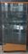 Vetrina di forma mossa con quattro mensole in cristallo molato. Base e sommità