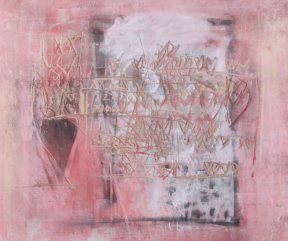GIORGIO CELIBERTI Udine 19/11/1929  Passaggio del Mar Rosso, 1990 affresco (tecnica mista) su tela cm. 100x120, firma, titolo, anno, tecnica ed etichetta della Galleria Annunciata (MI) al retro, dichiarazione d'autenticità dell'artista su foto.
