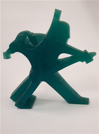 Scultura in pasta di vetro soffiata in stampo color azzurro e acidata sulla superficie esterna. Esecuzione Daum, Francia, secolo XX. Firmata e numerata 79/200. (h cm 37) (lievi difetti)