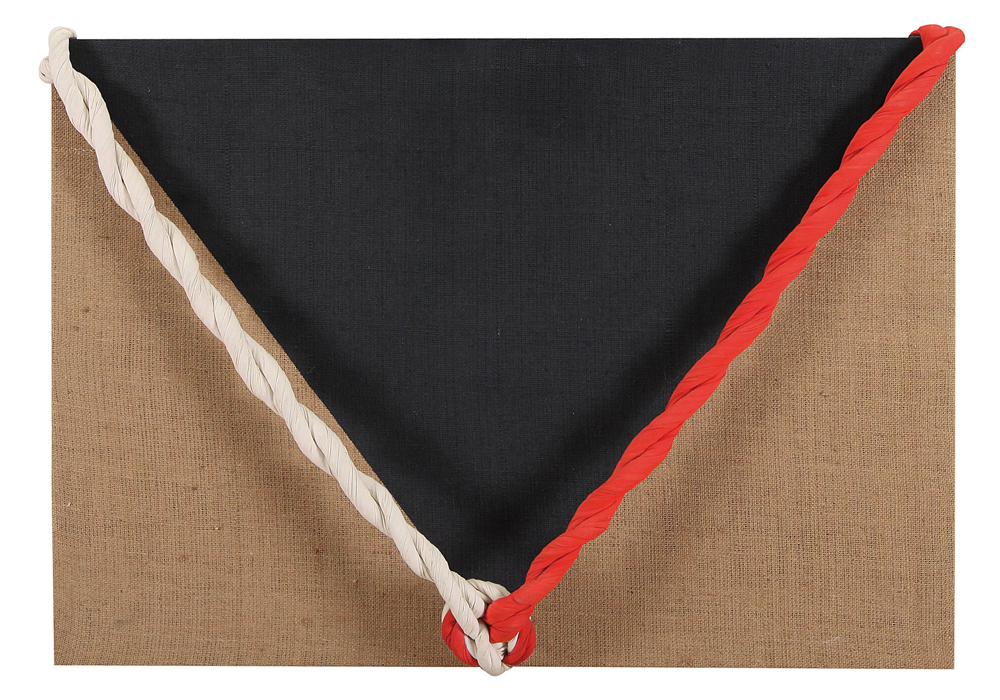 JORGE EIELSON Perù 1924 - Milano 09/03/2006 Quipus 12 C, 1994 tele annodate e acrilici su tela di juta applicata su tavola cm. 72x102, firma, titolo, anno, etichette e timbri della Galleria Lagorio Arte Contemporanea e della Galleria Elleni al retro, opera archiviata presso l'Archivio Jorge Eielson Saronno come da dichiarazione su fotografia, opera priva di cornice.