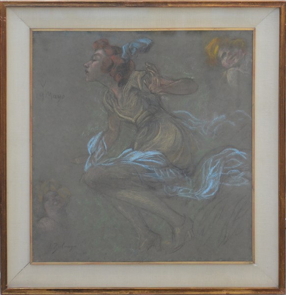 Ignoto del XX Secolo "Figure" pastelli colorati (cm 65x59) In basso a sinistra iscritto I.Zuloaga; in alto a sinistra datato 19 mayo. In cornice (difetti)